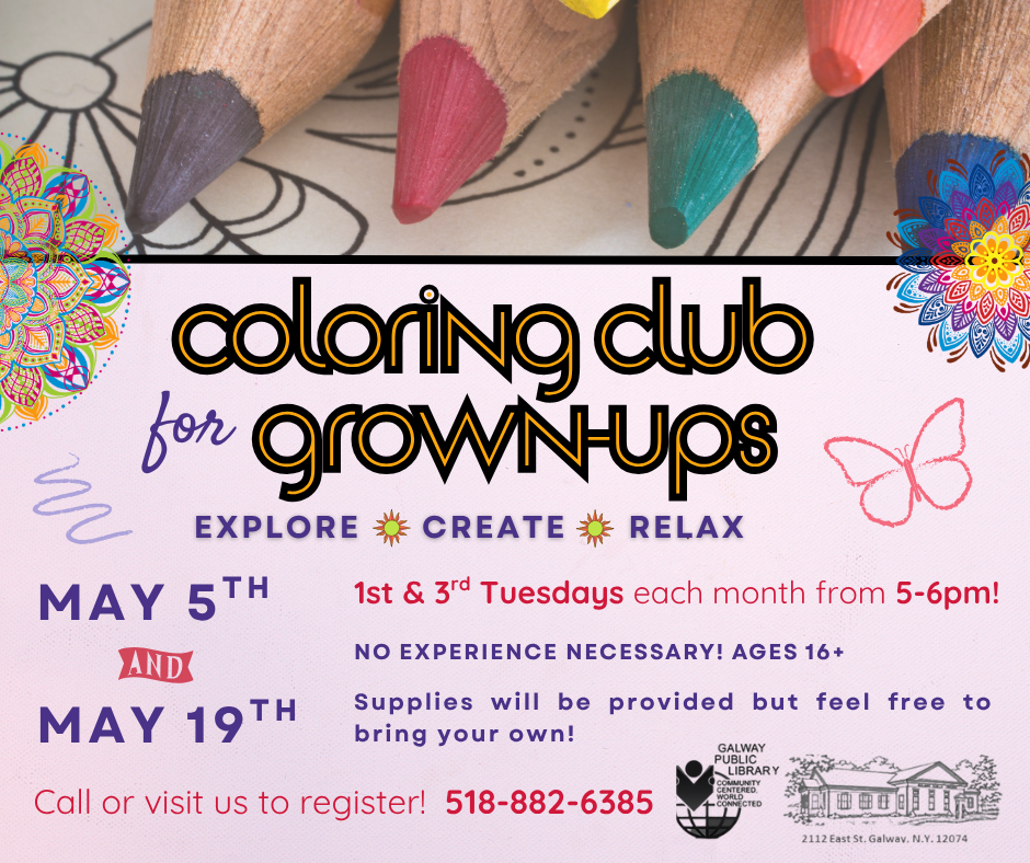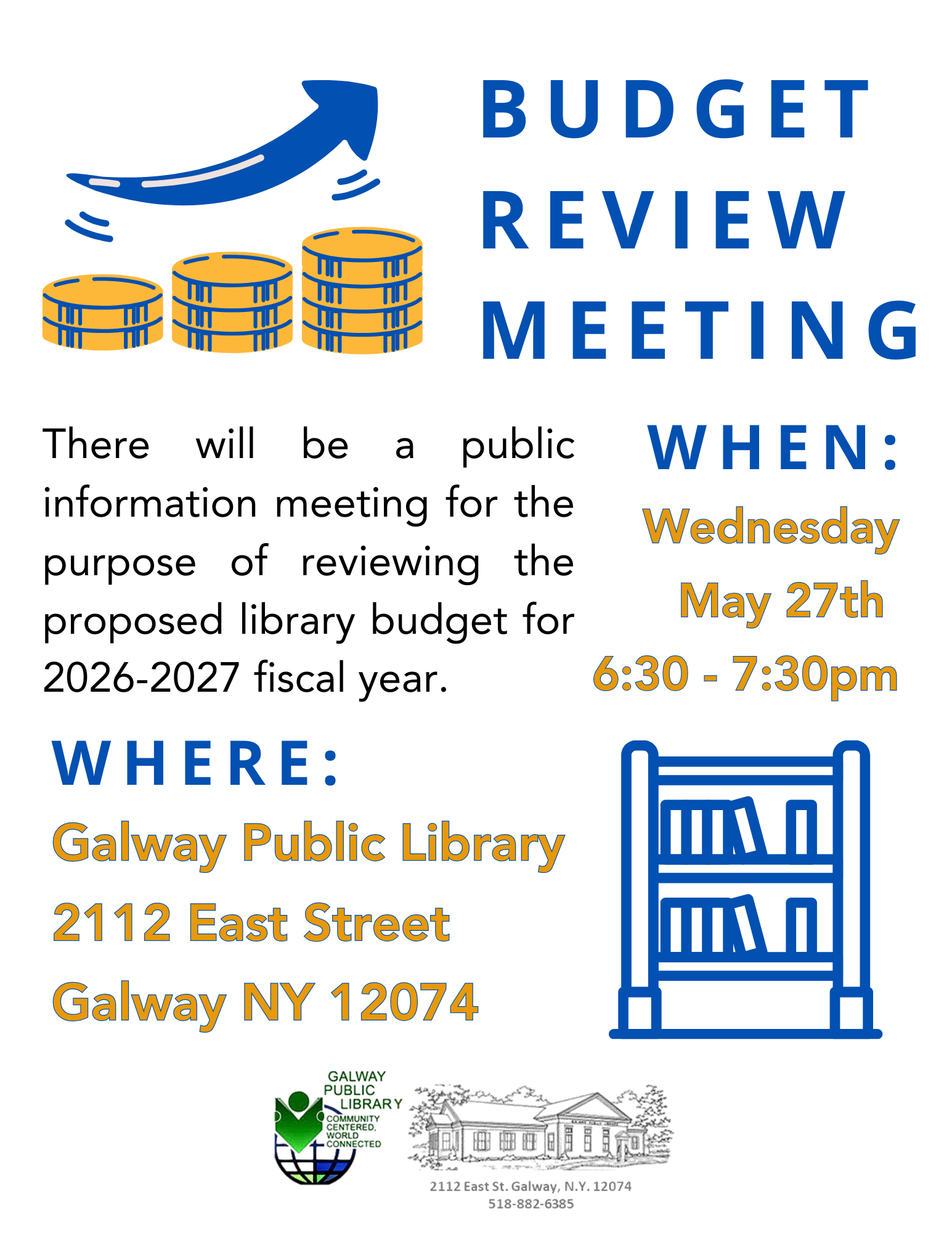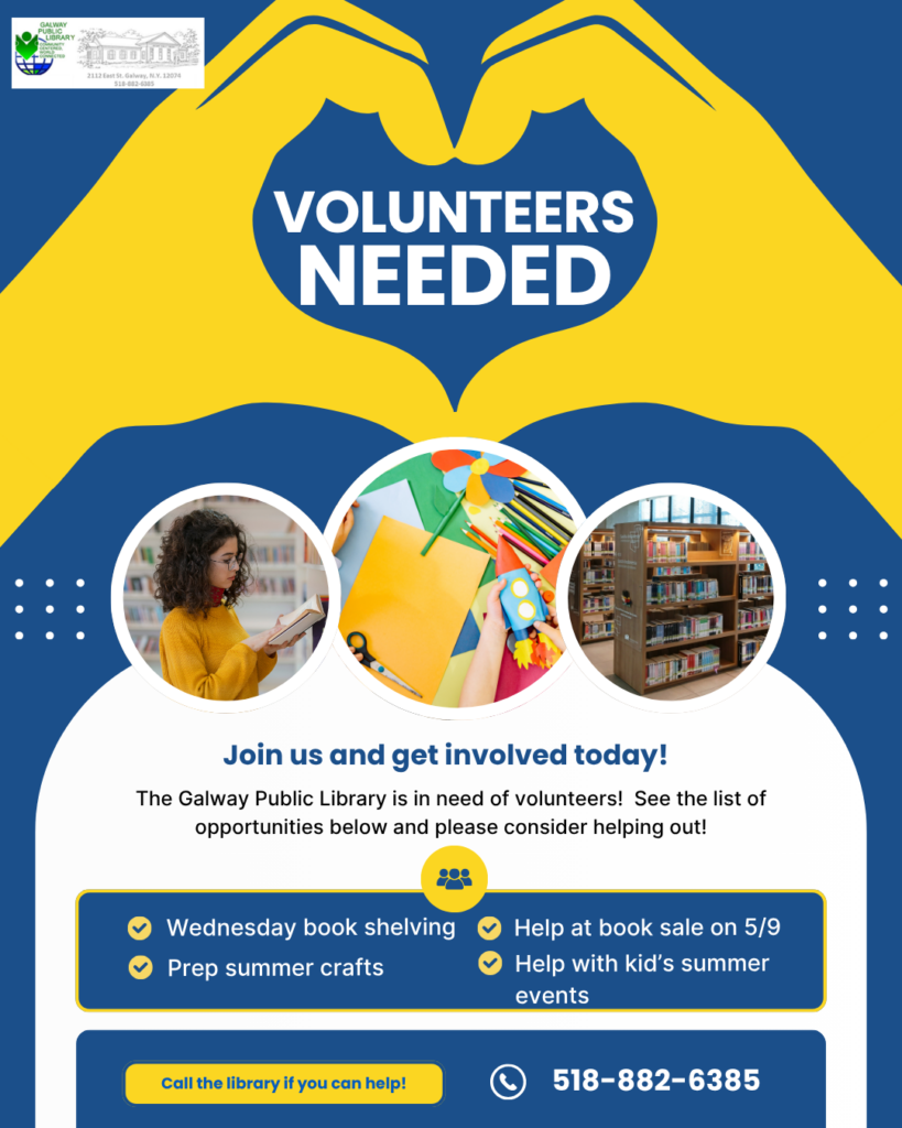 Check out our regularly scheduled Monthly programs for all Ages. These are held at the Galway Public Library, 2112 East Street, Galway, NY. USA. Call to register (518) 882-6385.